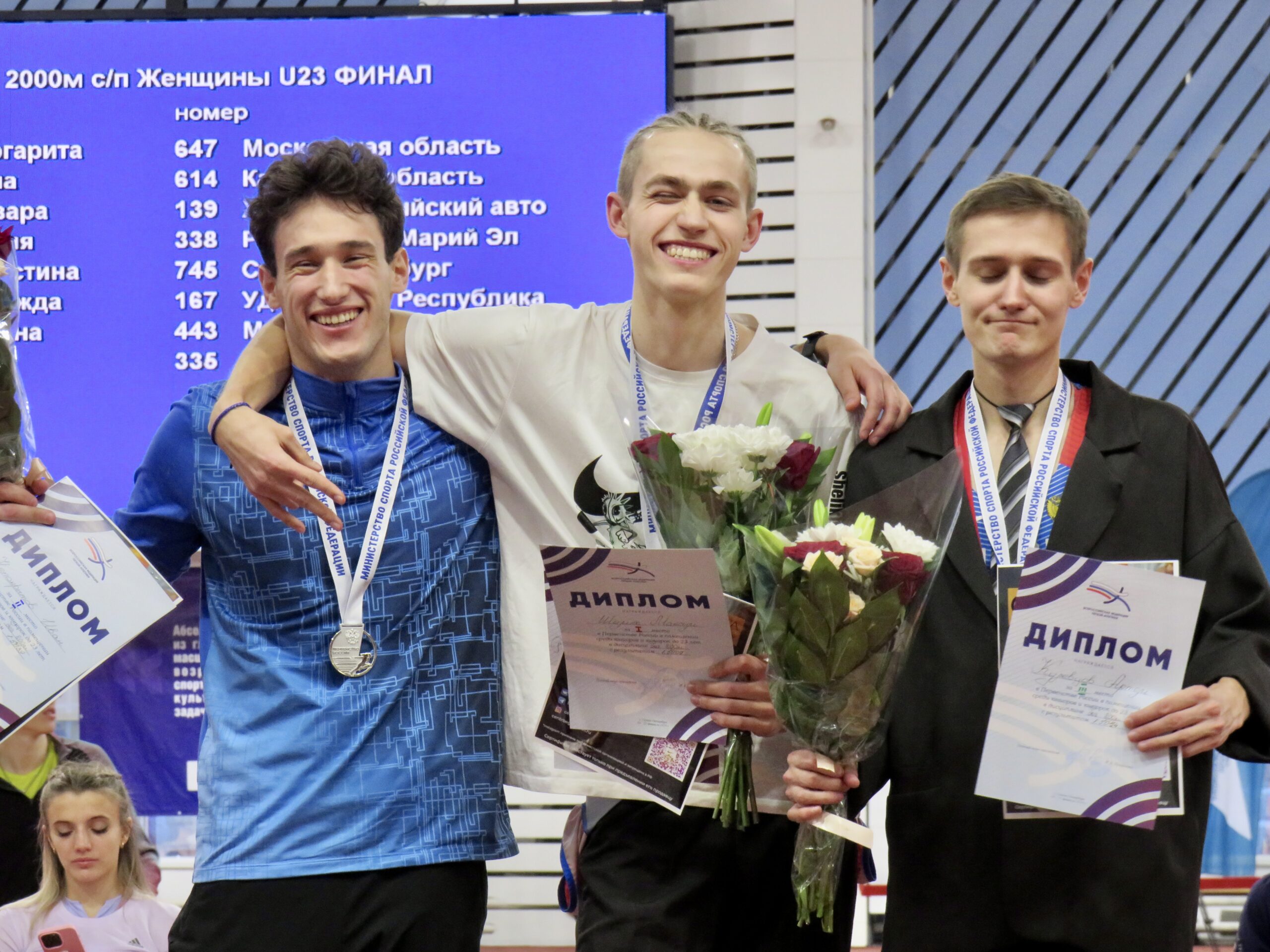 Победителями бега на 2000 м с/п на Всероссийских соревнованиях U23 стали Родион Раянов (Республика Татарстан) – 5:42.57 и Елизавета Николаева (Псковская область) – 6:38.83. Второе время дня показали Никита Павельев (Краснодарский, Адыгея) – 5:44.15 и Ирина Корнева (Калужская область) – 6:40.01. Замкнули тройки призеров Даниил Осипов (Москва) – 5:47.25 и Кристина Шабалина (Санкт-Петербург) – 6:42.11.