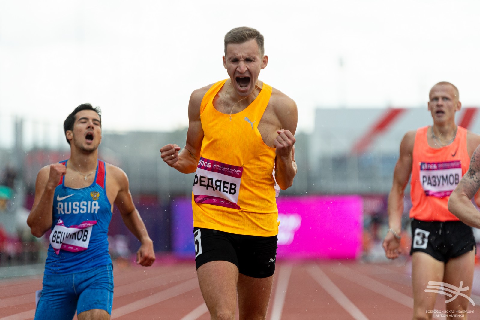 Максим Федяев (Московская, Курская), которого последнее время преследовали травмы, смог вернуть себе титул чемпиона России в беге на 400 м – 45.82. Серебряную медаль «Королевы спорта» увозит Роман Володькин (Республика Беларусь) – 45.94. На пьедестал почета чемпионата страны вместе с Максимом Федяевым поднялись Данил Вешняков (Санкт-Петербург) – 45.95 и Артем Арасланов (Москва, Кировская область) – 46.05.