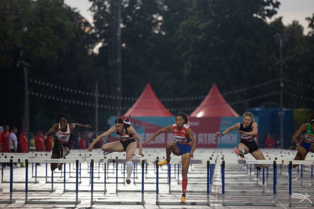 Бег на 100 м с/б выиграла Джоселин Лорета Эчасабаль (Куба) – 13.09. Победительница «Забега на Никольской» Дарья Осипова (Россия) в этот раз вторая – 13.15. Третий результат показала Валерия Громова (Россия) – 13.28.